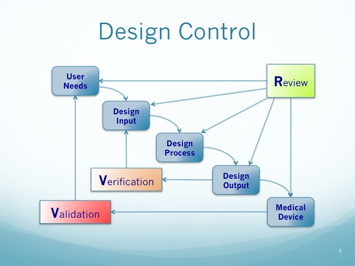 設計管理の手順では、開発計画から製造部門への設計移管まで、QSRが要求する基準に従った手順を設定する必要があります。FDAの設計ガイドラインでは、ひとつの概念図を用いて設計管理を説明しており、この図を通じて開発の各ステップにおけるデザインレビューの重要性や、検証と妥当性確認の関係性を明確にしています。